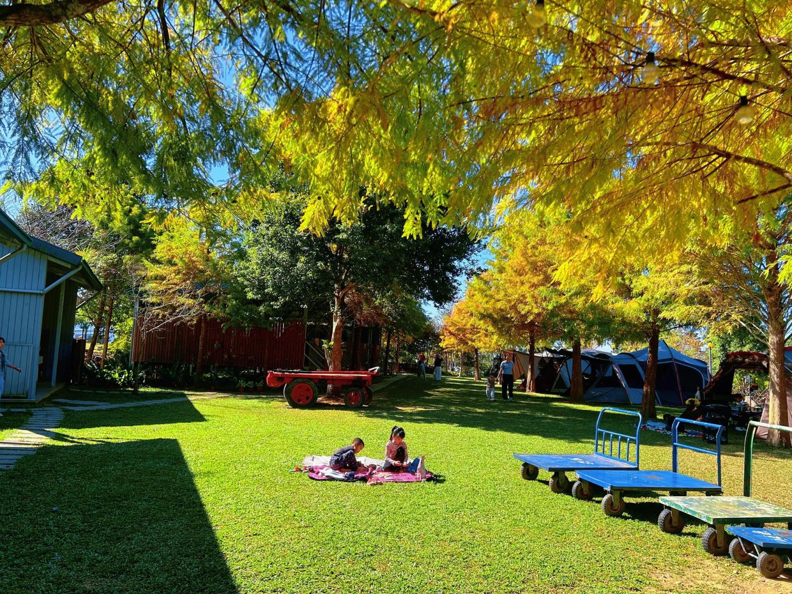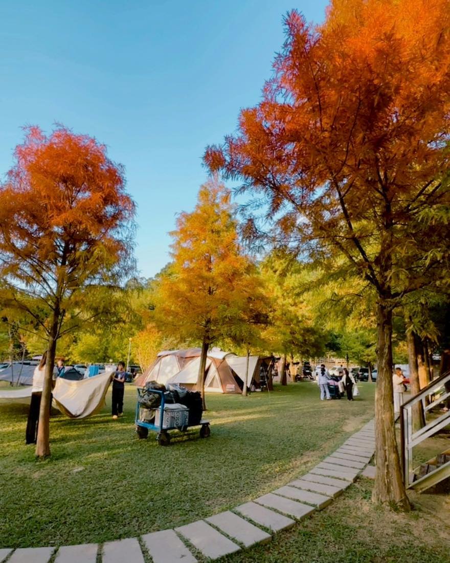 帳篷搭在落羽松下